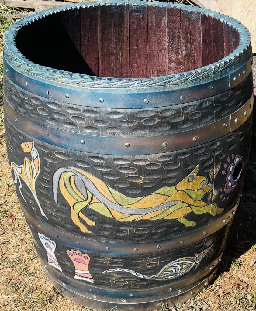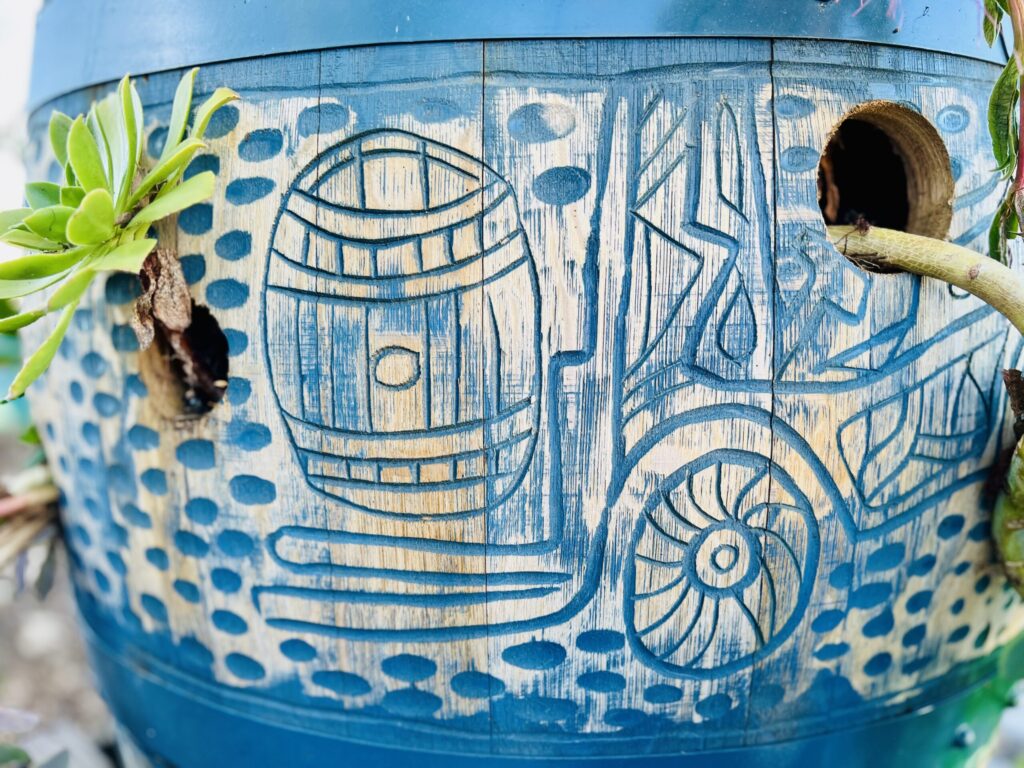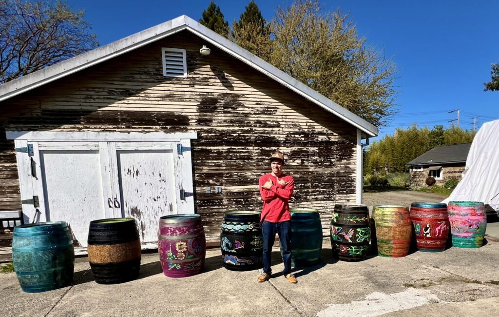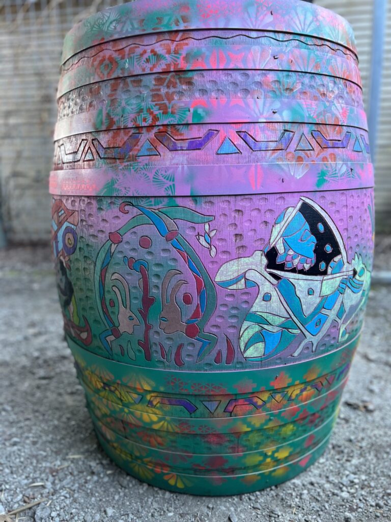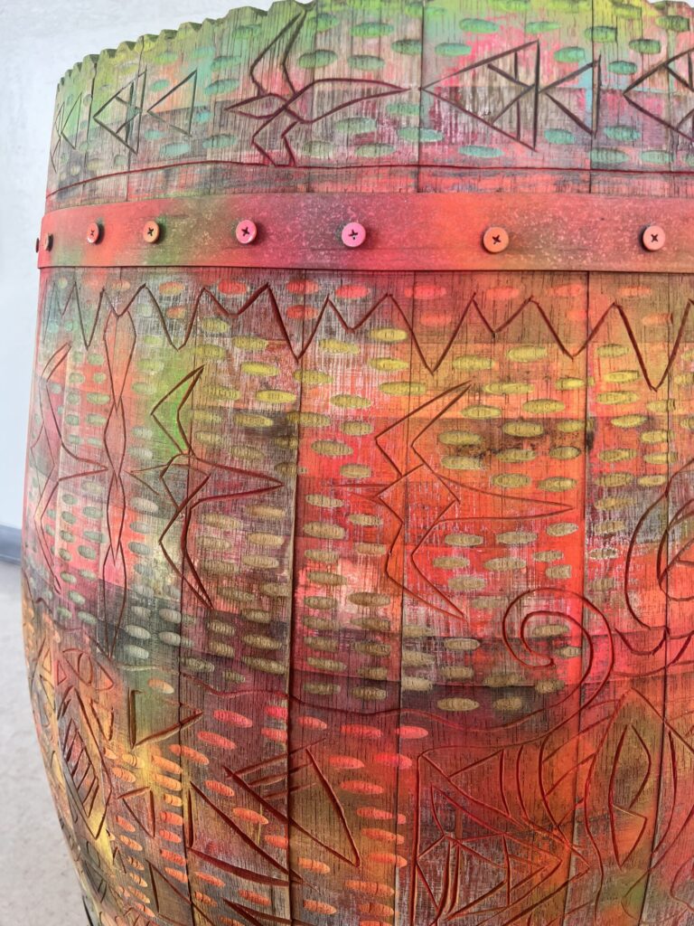 Deeply aligned with environmental stewardship, Koa transforms discarded oakโoften from local wine barrelsโinto vibrant sculptures that honor the life of the tree while giving it new purpose and finesse. Through his work, he cultivates connection, encourages reflection and generates dialogue between culture and nature while weaving together the burgeoning narratives for the future.