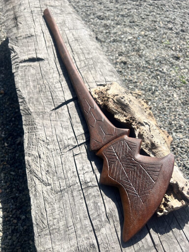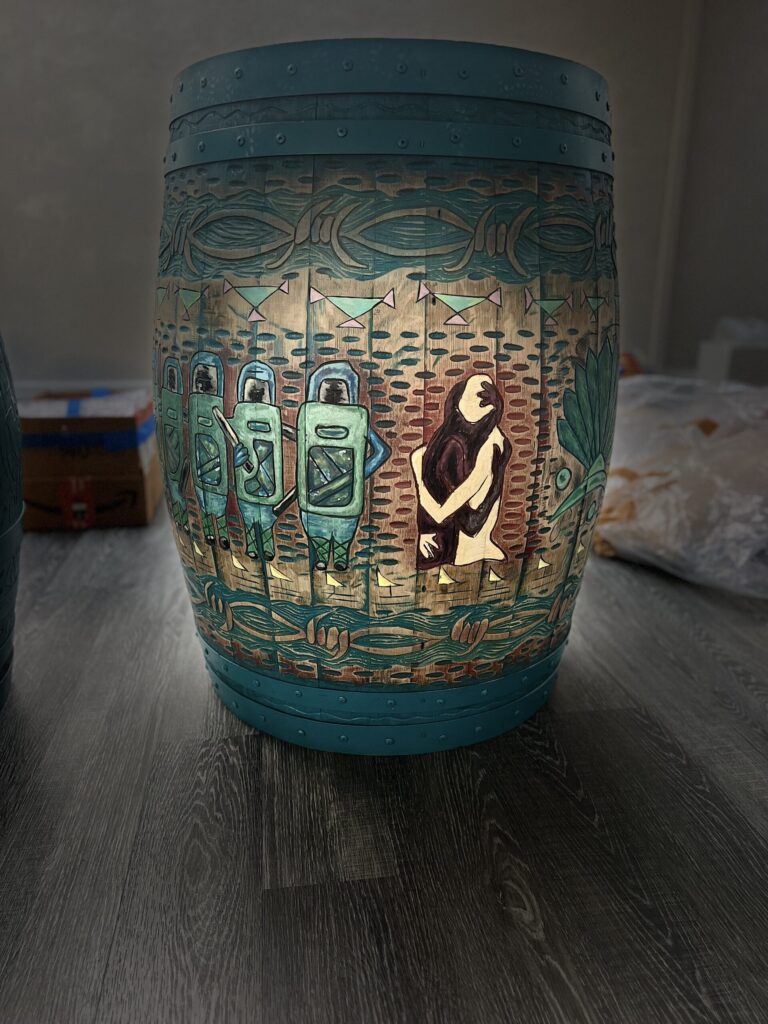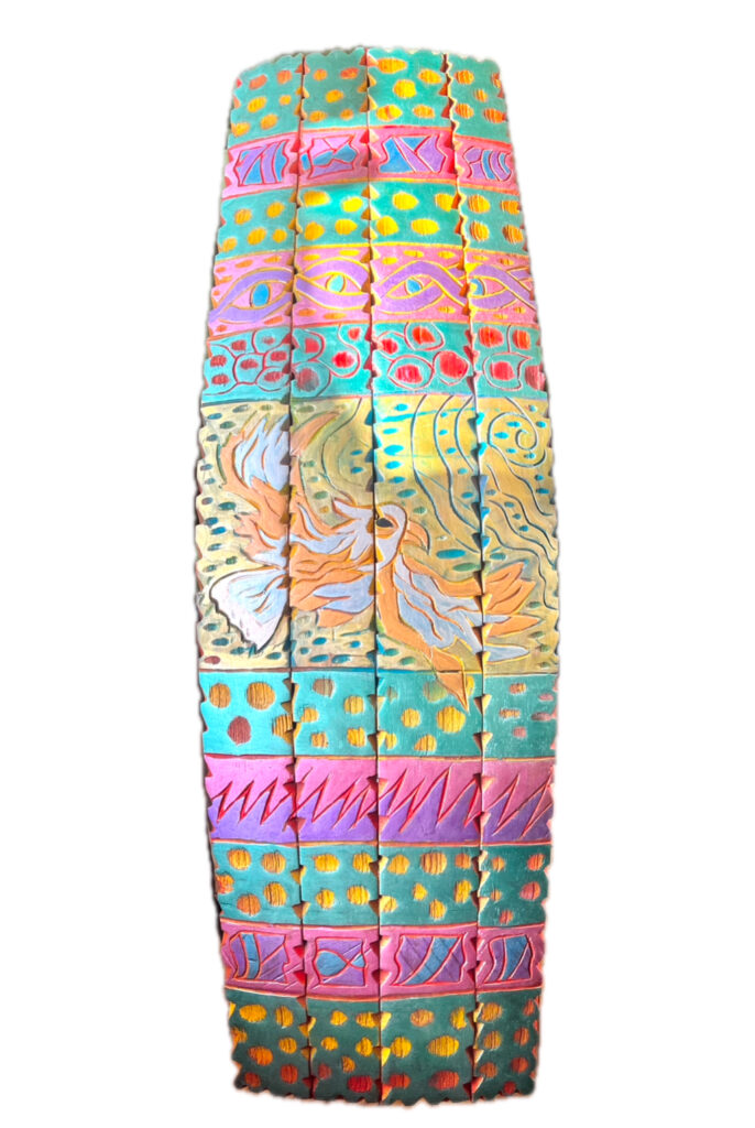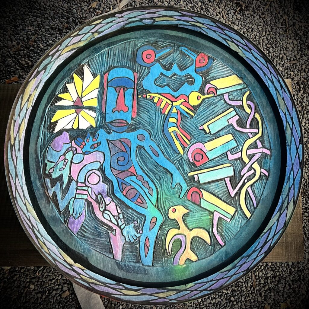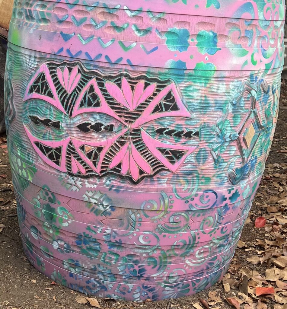 Working with large-scale wood, reclaimed materials, and collaborative projects, Koa channels the natural flow of patterns through the woodโs cambium with hand tools. Creating pan-oceanic motifs that explore cultural continuity, memory, and the human relationship with nature. His process is informed by direct engagement with elders, storytellers, and living cultural treasures, ensuring each piece carries both heritage and contemporary resonance.