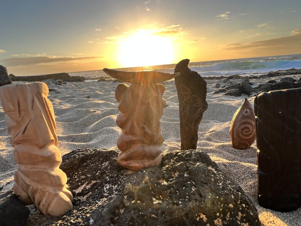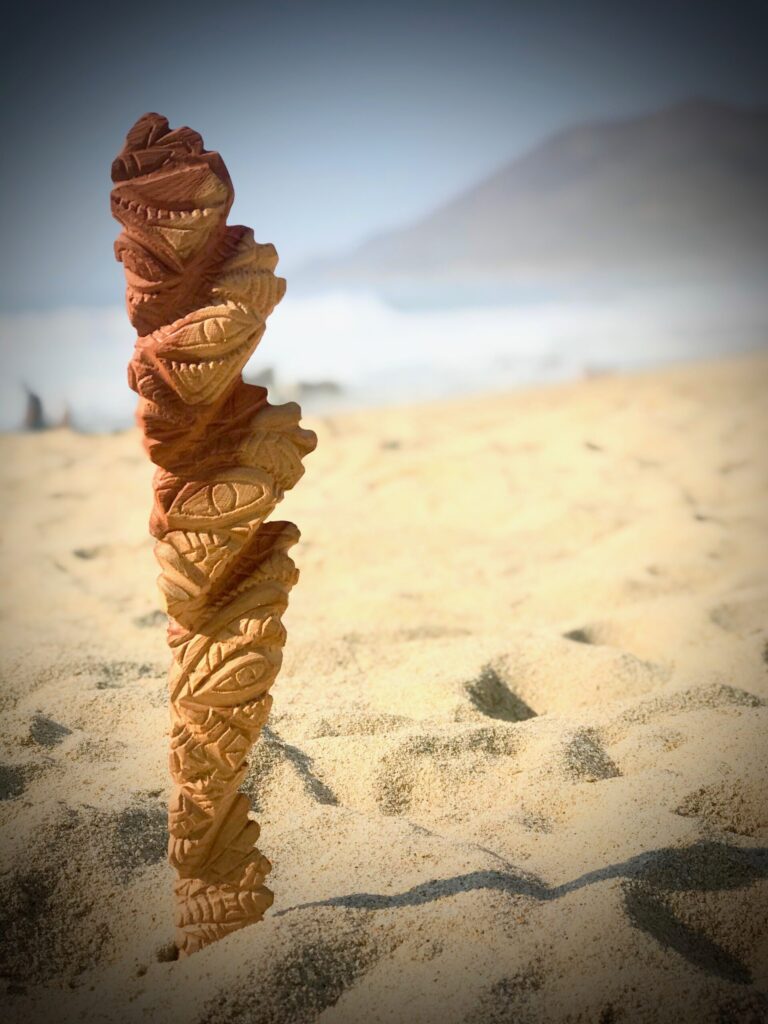 Koa Stevens is a California-based wood sculptor blending Polynesian heritage, ancient symbolism, and contemporary form. Through large-scale, collaborative, and reclaimed wood works, his neo-primitive sculptures explore cultural continuity, ancestral memory, and humanityโs enduring relationship with the natural world.