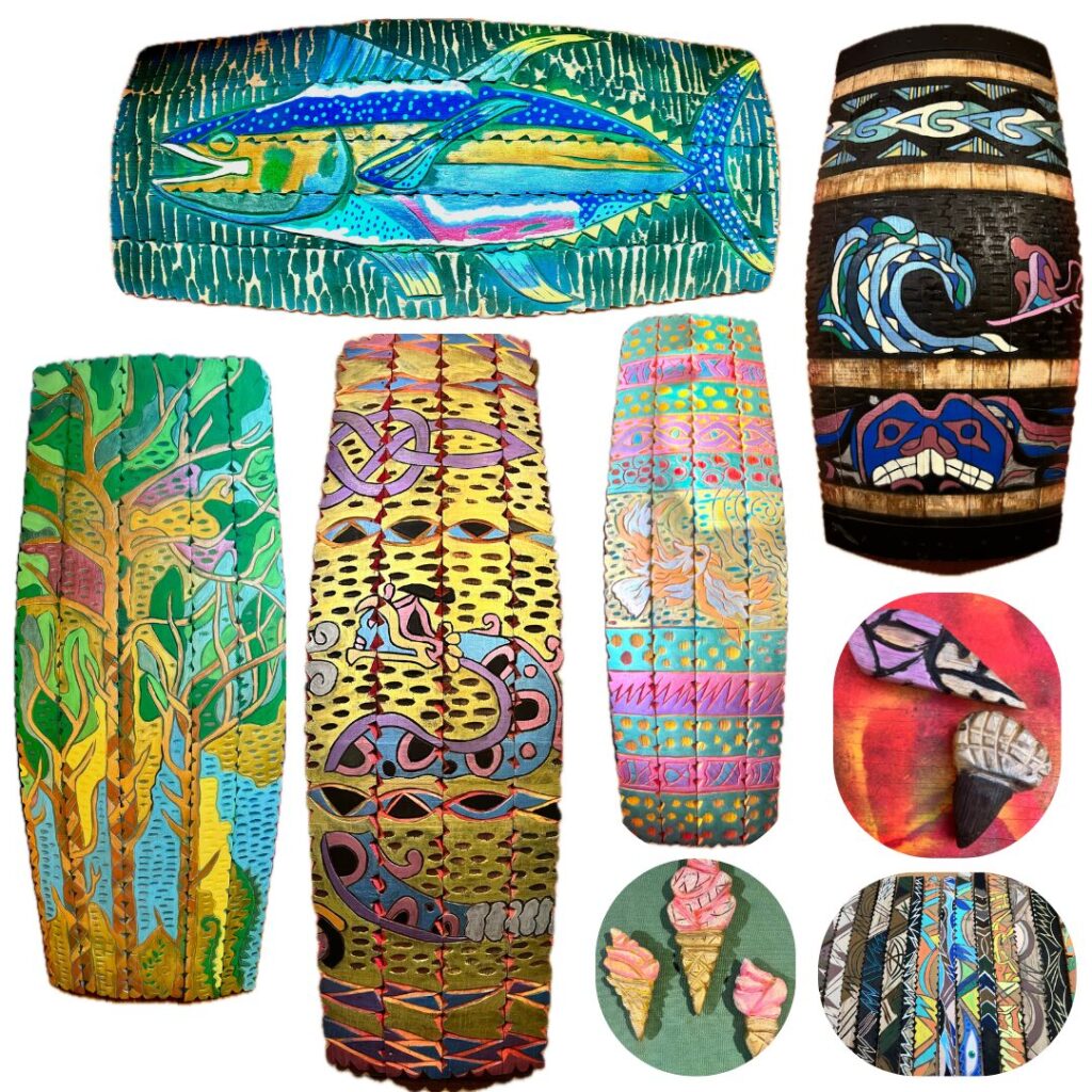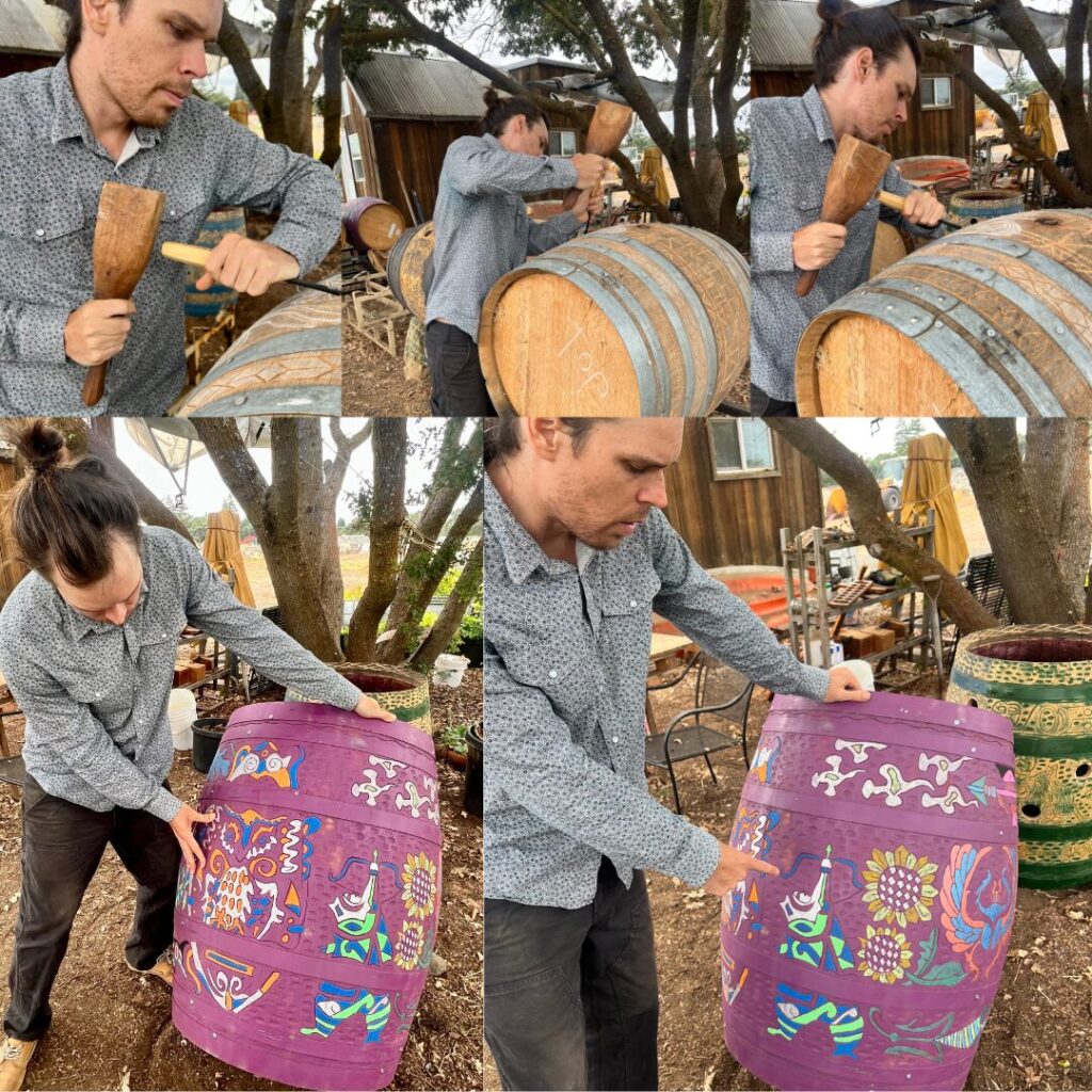 Living in wine country, surrounded by discarded oak barrels, sourced from local raw/natural wineries, the sound from the hand chiseling and the quality of the wood became an unparalleled 360 degree wooded canvas story board with endless creative opportunities which have had a huge creative communal reach as both statement art pieces and teaching vessels. I have found myself embarked on a journey since 2020 onward carving every part of the barrel and sharing the experience across many platforms through visual art and as well as having these barrels be a vessel of creative learning through local cultural carving programs. As an artist does, we push boundaries, weave tales, narrate the zeitgeist and transform the underrated into a spectacle.