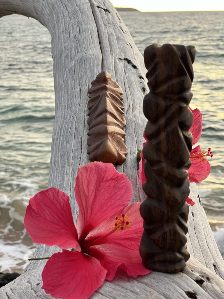 These micro carvings have become the first calling card for Koa Stevens, starting way back in 2005 when he was just a young tree and with no way to contact him other than something folks in Hawaii refer to as “the coconut wireless” (the psychic connection or synchronicity). He has since handed out these gifts and tokens of tactile cultural nuances to 11,000 + people between him and his father. Their gift of networking and being the adventurous artisans they are, wherever they go, these two have been sharing their mana and what lights them up, bringing art and culture into the hands of those whom are lucky to cross their paths.