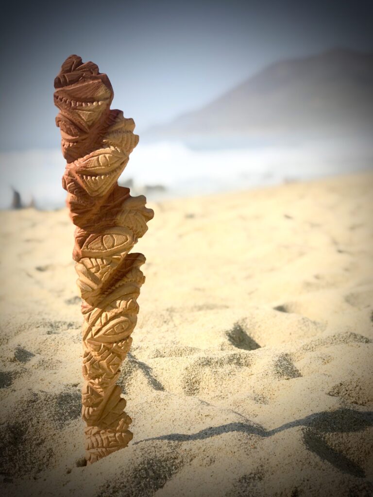 These micro carvings are the stuff of legends. Turning into a ‘quick-fish slow-fish’ project, a future blog in the making. With the aim and goal of this community blog to focus on reuniting the “how and when and where” these thousands of folks, whom have met Koa and Tonu along their artistic journey and what type of experiential impact this had on them. Did they pop out of a tree in the middle of the redwoods and you were left with a carved avocado pit or a pocket tiki that now protects your vehicle while it is parked. There are so many people to unite and have the story unfold on piece at a time. And we are curious to hear the boomerang call and response.